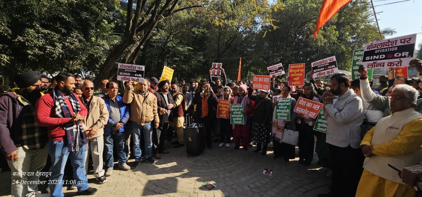बांग्लादेश में हिंदू समुदाय पर हो रही कथित लक्षित हिंसा, दमन और अत्याचारों के विरोध में मंगलवार को देहरादून में आक्रोश प्रदर्शन किया गया। यह प्रदर्शन विश्व हिन्दू परिषद और बजरंग दल के आह्वान पर आयोजित किया गया, जिसमें साधु-संतों, व्यापारी वर्ग सहित हिंदू समाज के विभिन्न वर्गों की व्यापक भागीदारी देखने को मिली।