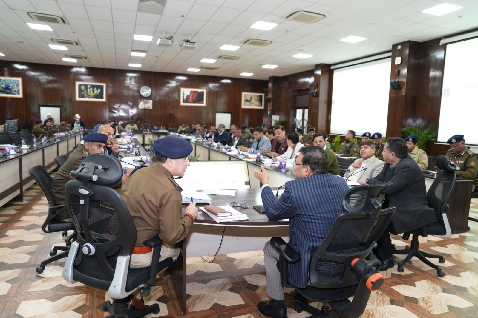 बैठक में पुलिस महानिदेशक श्री दीपम सेठ, प्रमुख सचिव श्री एल. फैनाई, श्री आर. मीनाक्षी सुंदरम, सचिव श्री शैलेश बगौली, पुलिस विभाग के वरिष्ठ अधिकारी तथा वीडियो कॉन्फ्रेंसिंग के माध्यम से सभी जिलाधिकारी उपस्थित रहे।