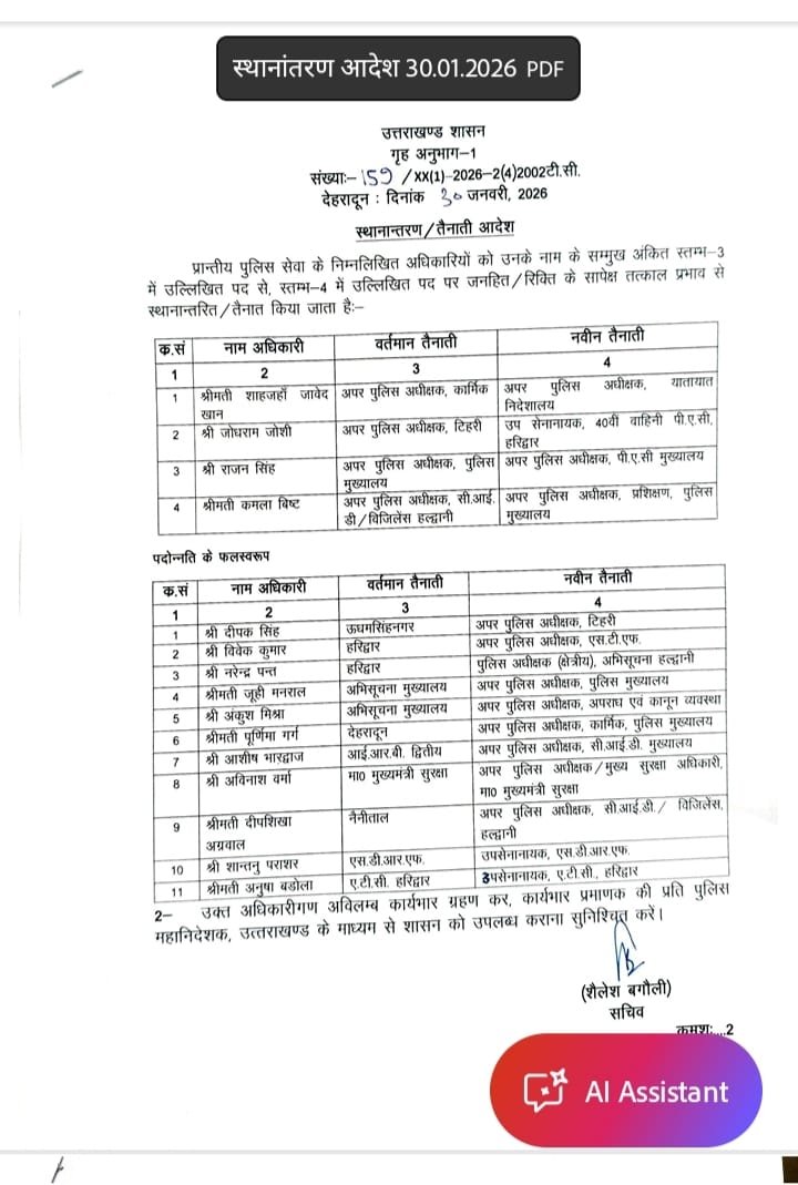प्रशासनिक सूत्रों के अनुसार, यह फेरबदल हरिद्वार-रुड़की क्षेत्र की सुरक्षा रणनीति, कानून-व्यवस्था की मजबूती और आगामी चुनौतियों को ध्यान में रखते हुए किया गया है। माना जा रहा है कि इस बदलाव से संवेदनशील क्षेत्रों में पुलिस की निगरानी और खुफिया तंत्र को और अधिक सशक्त किया जाएगा।